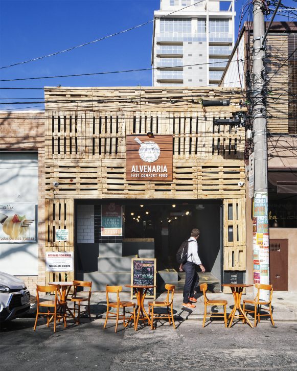 PROJETO DE ARQUITETURA E INTERIORES Projeto de Arquitetura e Interiores para o Restaurante Alvenaria localizado no Brooklin Paulista em São Paulo – SP. Dados da Obra: Projeto: 2019; Obra: 2019; Área Construída: 248,00m². Equipe: Frederico Zanelato e Sergio Faraulo. Fotos: Eduardo Triboni.