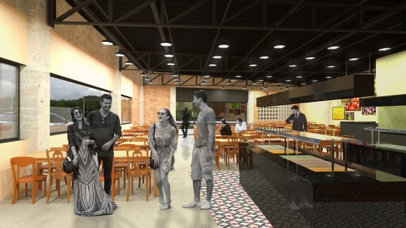 PROJETO DE ARQUITETURA E INTERIORES Projeto de arquitetura e interiores para um restaurante localizado em um shopping de São José dos Campos – SP. Dados da Obra: Projeto: 2018; Obra: Em andamento; Área de Intervenção: 587,03m². Autores: Frederico Zanelato e Sergio Faraulo.
