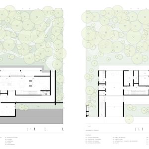 A casa foi dividida em dois níveis para aproveitar o alto desnível do terreno sem precisar fazer grandes movimentações de terra, ocupando uma fração mínima do lote e preservando a grande maioria das arvores existentes. A residência se abre para a natureza nativa dando a impressão de se estar em uma grande casa na árvore, a área social se integra com uma praça privativa/varanda suspensa que se joga para o meio desta mata tendo um grande banco que circunda este espaço de convivência e de geração de momentos, de memórias.
