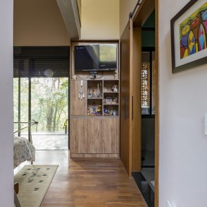 O projeto da Casa SML foi desenvolvido para uma cliente que pretendia morar em meio a mata nativa, a preservando e tirando proveito da sua topografia, do seu clima e de sua localidade, a intenção era sair dos grandes centros, mas sem perder suas comodidades.
