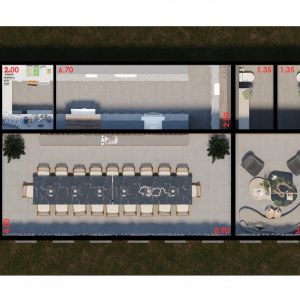 PROJETO DE ARQUITETURA E INTERIORES Projeto de arquitetura de interiores de um Pavilhão de Convivência localizado em Poá – SP. Dados da Obra: Projeto: 2023; Obra: Em andamento; Área Construída: 122,10m². Autores: Frederico Zanelato e Sergio Faraulo.