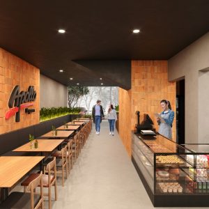 PROJETO DE ARQUITETURA DE INTERIORES Projeto de arquitetura e interiores para o segundo restaurante do Apollo Grill localizado em Suzano – SP. Dados da Obra: Projeto: 2023; Obra: 2024; Área de Intervenção: 245,00m². Autor: Sergio Faraulo.