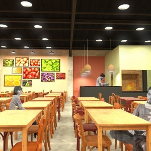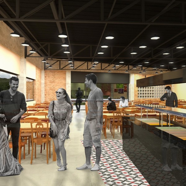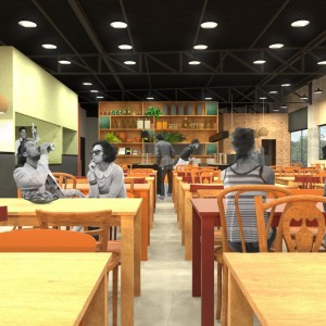 PROJETO DE ARQUITETURA DE INTERIORES Projeto de arquitetura e interiores para um restaurante localizado em Arujá – SP. Dados da Obra: Projeto: 2017; Obra: Em andamento; Área de Intervenção: 403,50m². Equipe: Sergio Faraulo e Frederico Zanelato.